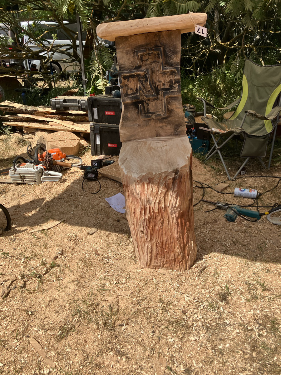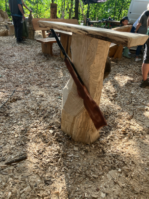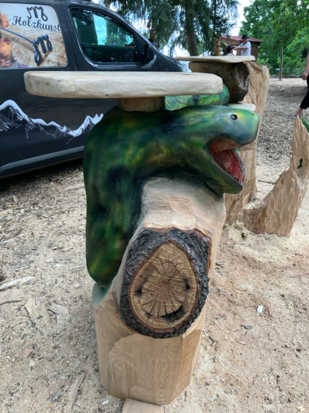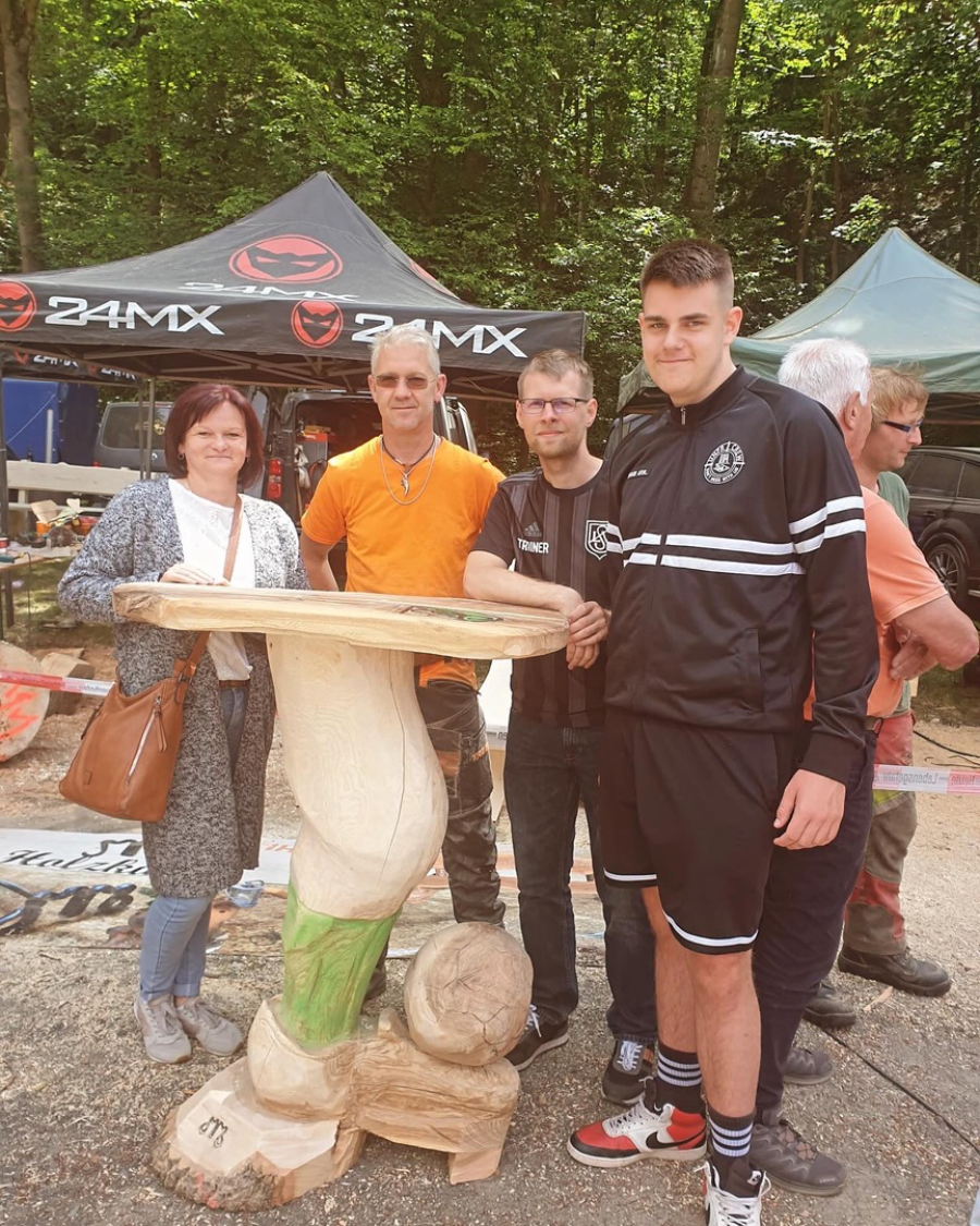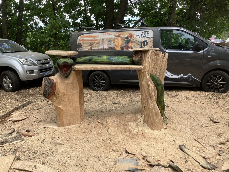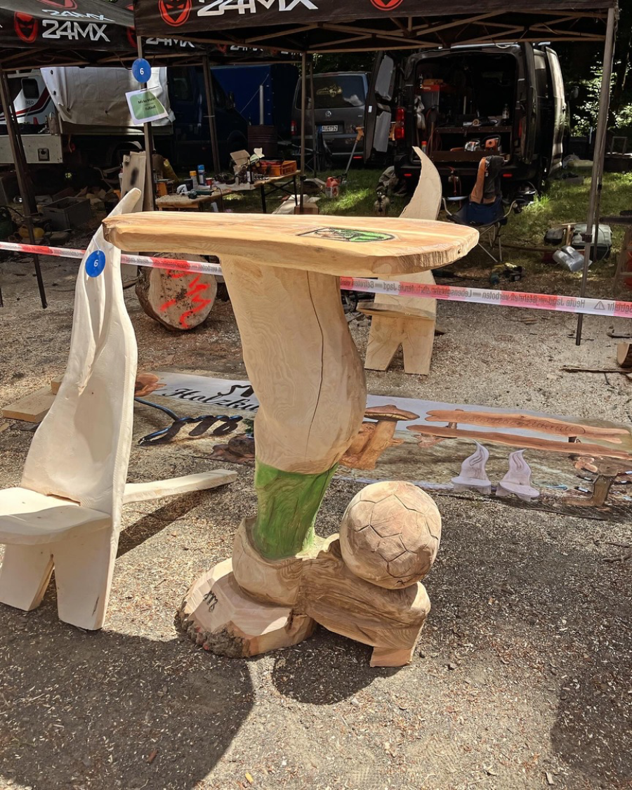 Im Juni 2024 war ich in Luiesentahl zu einem Schnitzevent wo ich als Auftragsarbeit einen Stehtisch für den dort ansässigen Fußballverein inForm eines Fßballerbein´s mit Ball und entsprechendem