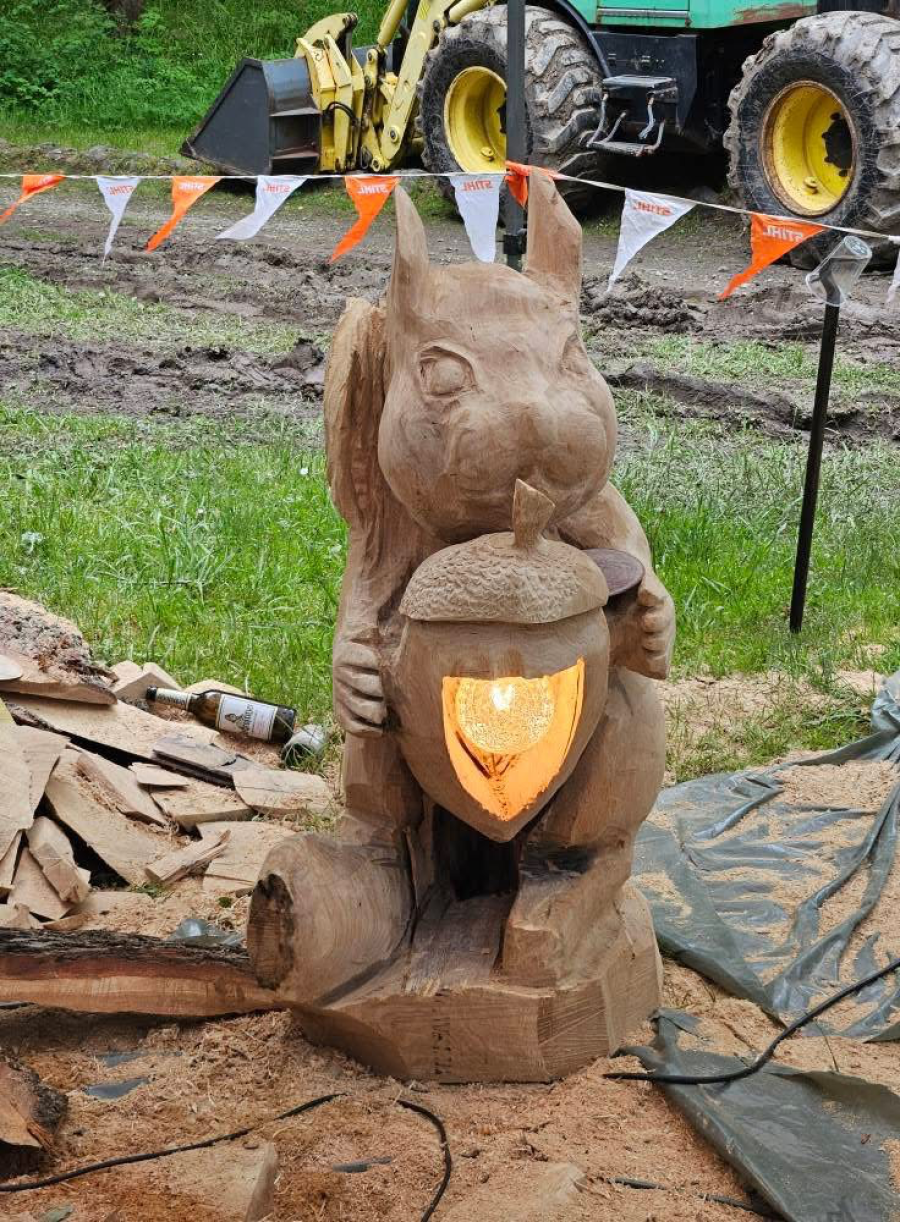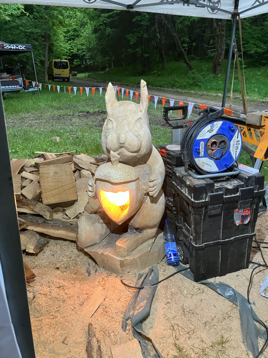 Beim 15.Holzbildhauersymposium 2025 hatte ich mir zur Aufgabe gemacht eine weitere Lampe für meinen Hof zu schnitzen. Als Motiv wollte ich ein Eichhörnchen nehemen. Anfangs hatte ich noch keine genauen Vorstellungen wie ich das mit dem Licht realisieren soltte. aber irgendwann kam die Idee dieses in der Eichel zu integrieren.